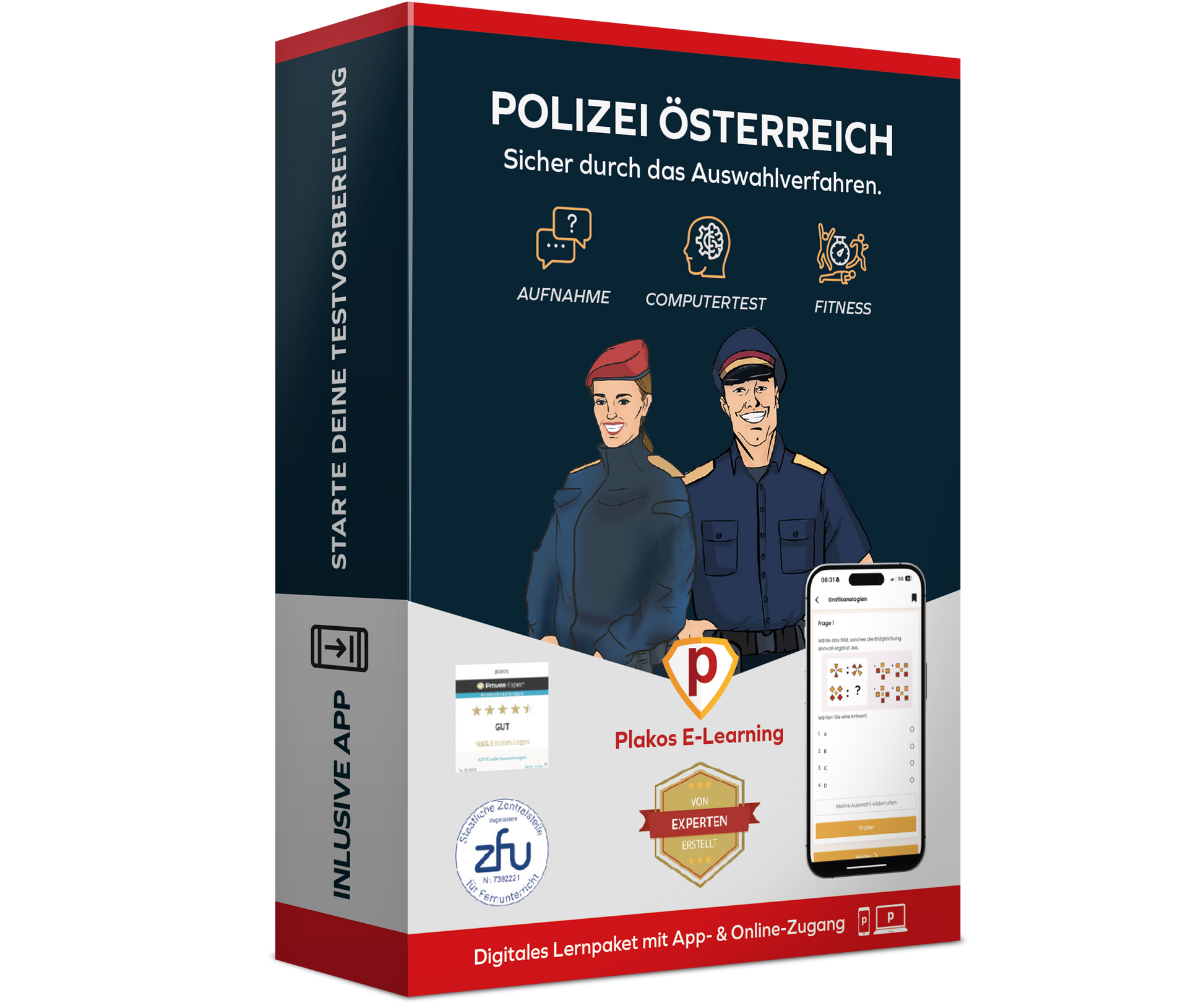 Aufnahmetest Polizei Österreich online trainieren mit zahlreichen interaktiven Übungsaufgaben Videokursen und Erfahrungsberichten – die perfekte Vorbereitung für Computertest Aufnahmegespräch und Sporttest.